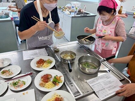 参加者の多くは、ミールキットを使った事がなく、初めは作り方を見て少し戸惑いながら作っている様子もありましたが、出来上がってからは、一品ずつ味を確認し、どれも美味しいね〜などと、お話ししながら楽しくいただきました。