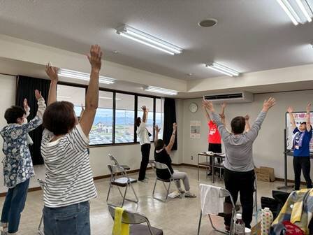 「思いのほか楽しく笑うことで脳が活性化し元気になりました。」「笑いヨガに興味があったので、とてもよかったです。1回だけではもったいないので、また企画してください。」「肩こりがとれました。」「体が軽く、頭スッキリでした。」などの感想をいただきました。