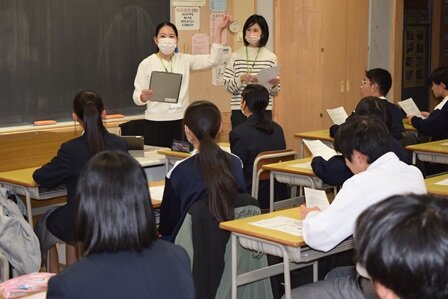 当日はエコボランティア委員会の生徒さんに向けて、組合員理事から "ペットボトルキャップがどのように活用されるのか" について10分程のミニ学習会を行いました。
