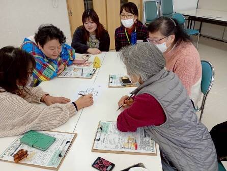 第一部は、ながおか医療生協の職員さんを講師にお迎えして「あたま体操」にチャレンジしました。「三角形探し」や「令和版!?あんたがたどこさ」などルールはとても単純なのにやってみると難しいゲームに挑戦。「あーなるほど!」や「キャ~むずかしい~~!」などの歓声や笑い声で盛り上がり、頭も心も体も温まりました。