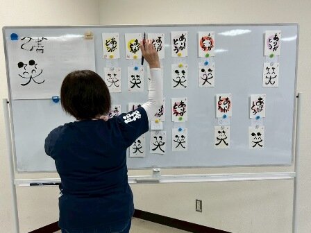 参加者からは、「楽しかった」という声が大多数で、「筆文字の新しい発見がありました。年賀状に使ってみたいです」「認知症にもよい。と聞いて、毎日続けたいです」「皆違う作品で、見ていてほほえましくなりました」などの感想が寄せられました。