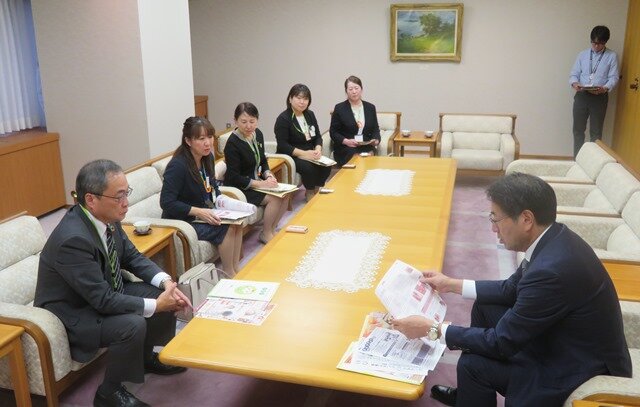 10月30日(木)、コープデリにいがたは、事業活動や社会活動の紹介を通じて、コープの認知向上を図るため、新潟市の中原八一市長を表敬訪問しました。懇談では、コープデリにいがたの登坂康史理事長からコープデリにいがたの事業報告やコープ共済の紹介、小林かおり理事からは組合員活動報告がありました。